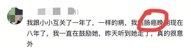 通过网友的评论我们不难看出,袁小小是因为结肠癌而去世的。一位和她互关将近一年的网友称,她和自己得的都是结肠癌,他们一直在互相鼓励,没想到仅仅一年时间袁小小就去世了,真的是太意外了。
